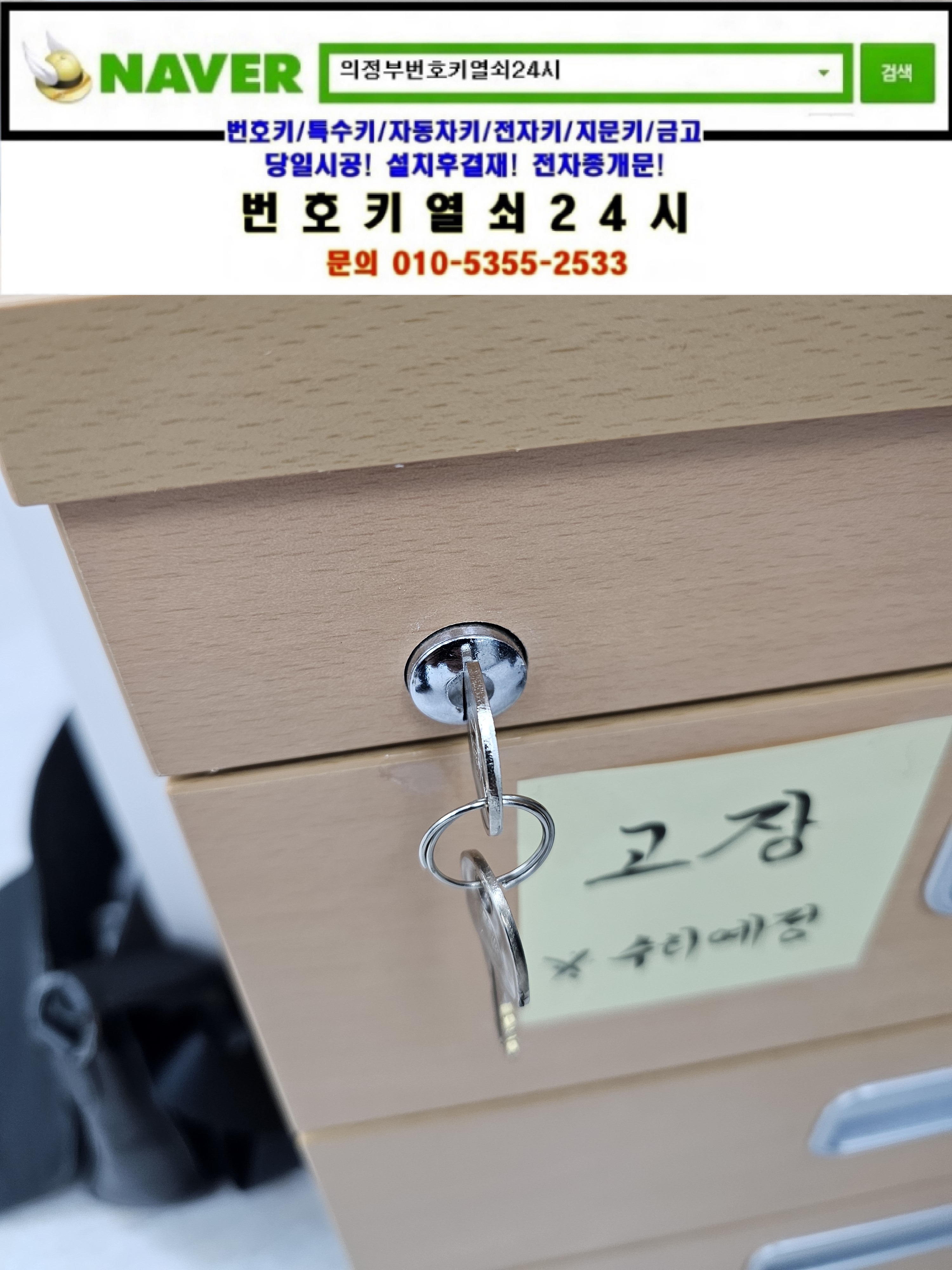 의정부시 신곡동열쇠(경기도청북부청사/청사로 1) **과 3단서랍장열쇠 키박스 교체설치출장은 번호키열쇠24시가(010 5355 2533) 해결하고 왔습니다.
