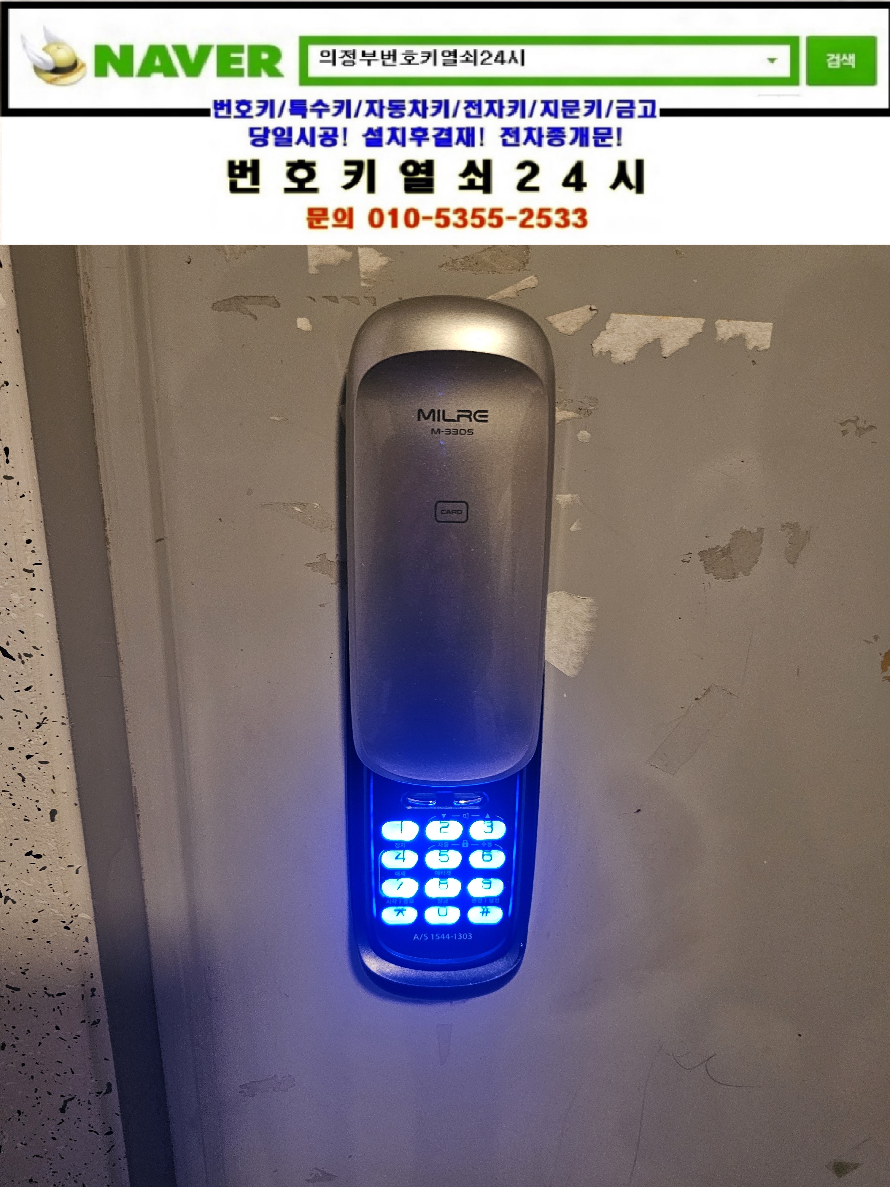 남양주시 퇴계원면열쇠(도제원로22) 퇴계원 성원아파트 커버타입 카드키도어락 m330s는 번호키열쇠24시가(010 5355 2533) 설치합니다.