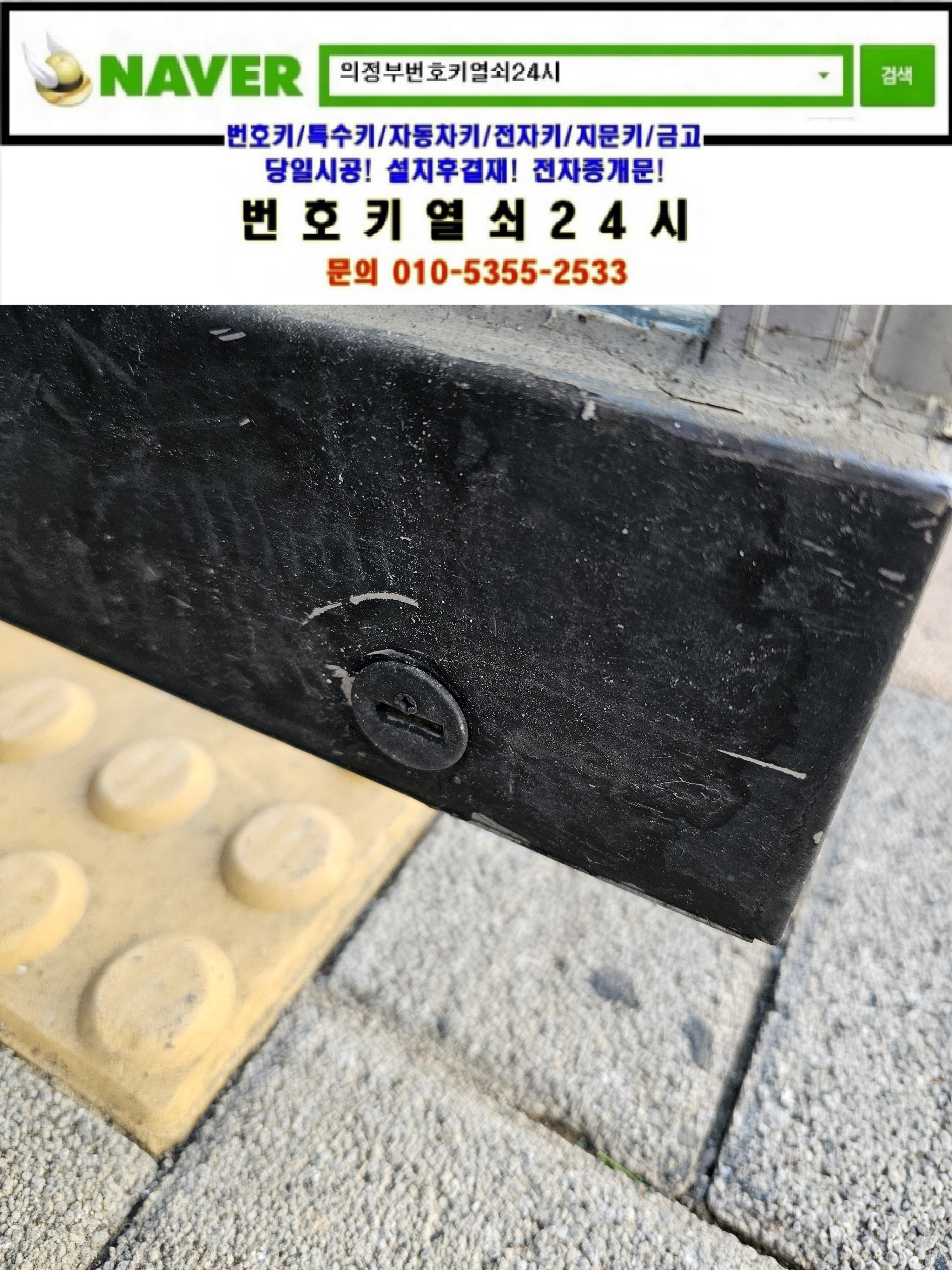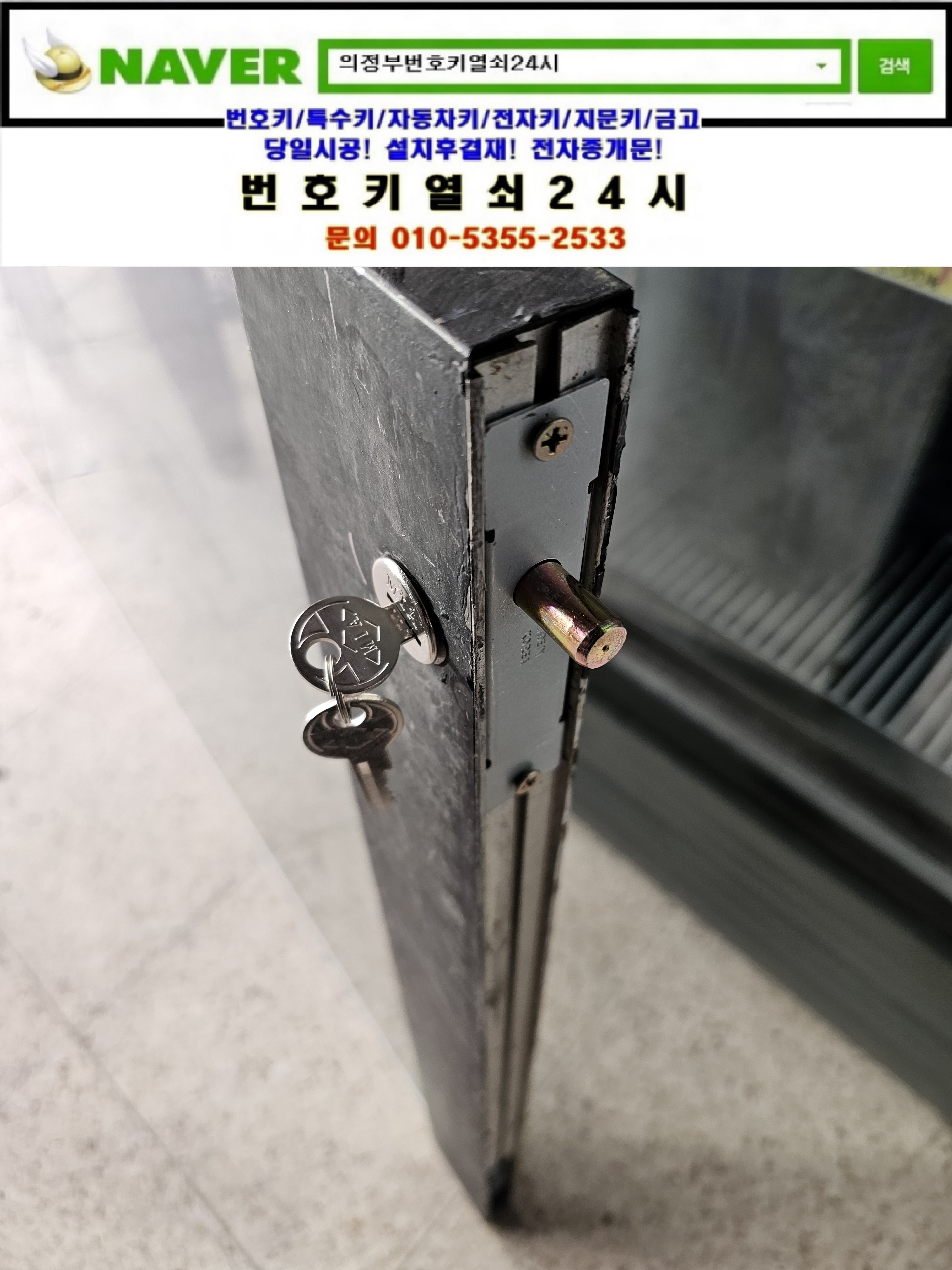 의정부시 고산동열쇠(입암로14) 정음마을 고산1단지 상가동 **매장 강화유리문 하단기본열쇠는 번호키열쇠24시가(010 5355 2533) 설치하고 왔습니다.