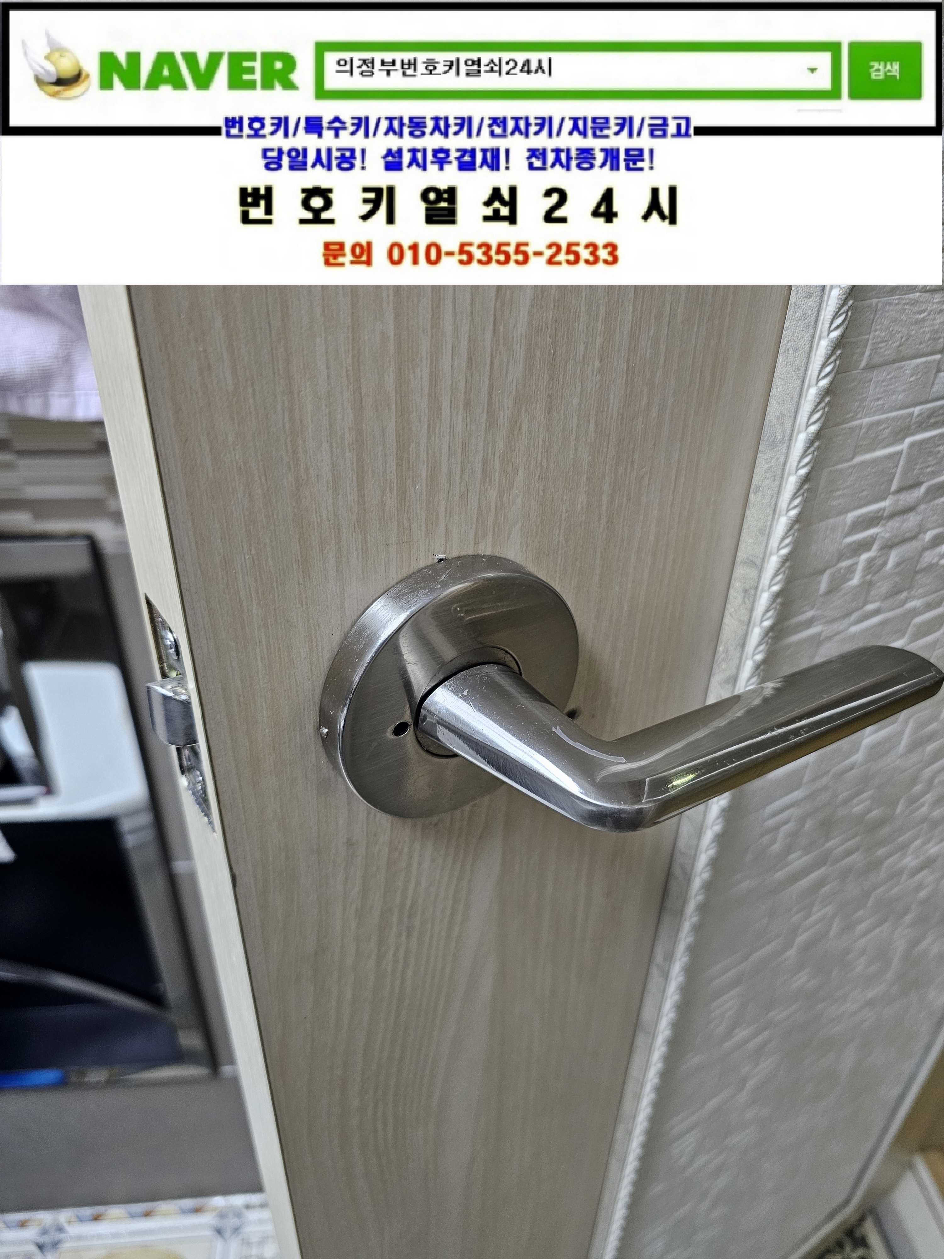 의정부시 낙양동열쇠(민락2지구도어락/송양로46) 민락푸르지오아파트 화장실 레바문고리고장나 번호키열쇠24시가(010 5355 2533) 설치하고 왔습니다.