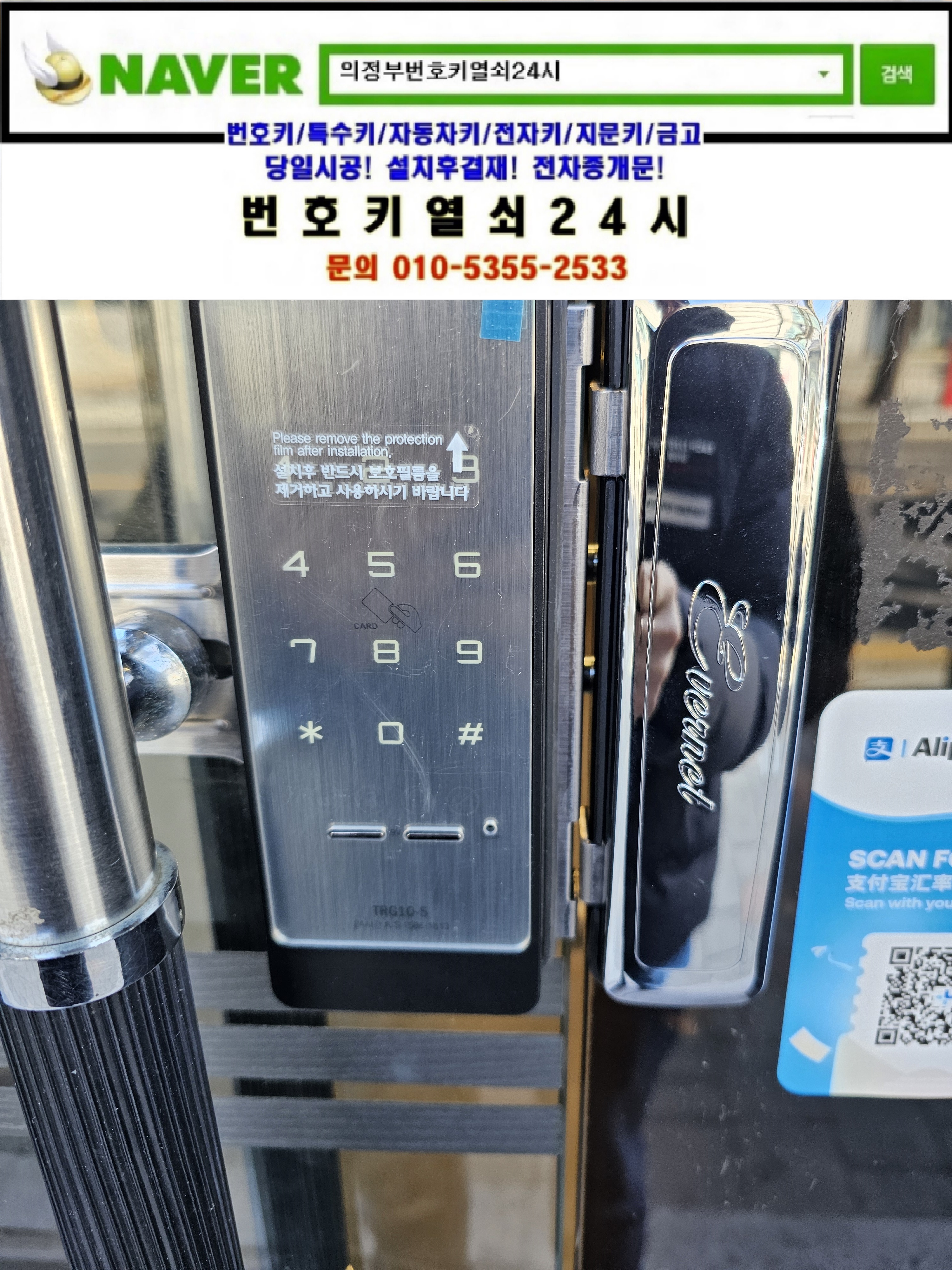 서울 도봉구 방학동열쇠(방학로6길4) **건물 매장 유리문 커버형 스마트도어락 번호안눌리고 고장나 카드키타입도어락 trg10s는 번호키열쇠24시가(010 5355 2533) 설치하고 왔습니다.
