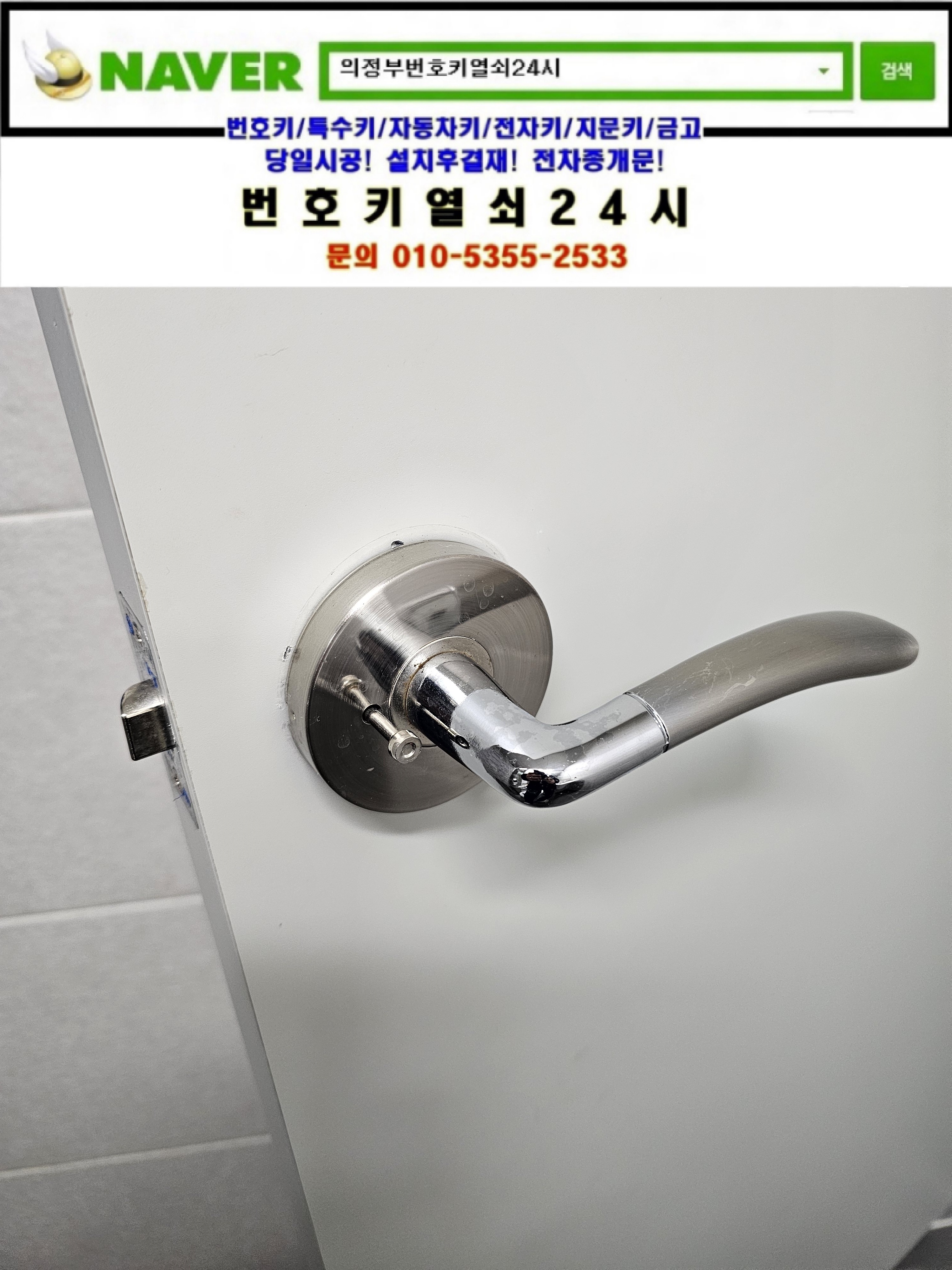 | [문고리고장교체설치/원형손잡이교체설치]상계동열쇠 **매장 원형문고리는 번호키열쇠24시가 설치합니다. (0) | 2025.02.23 |