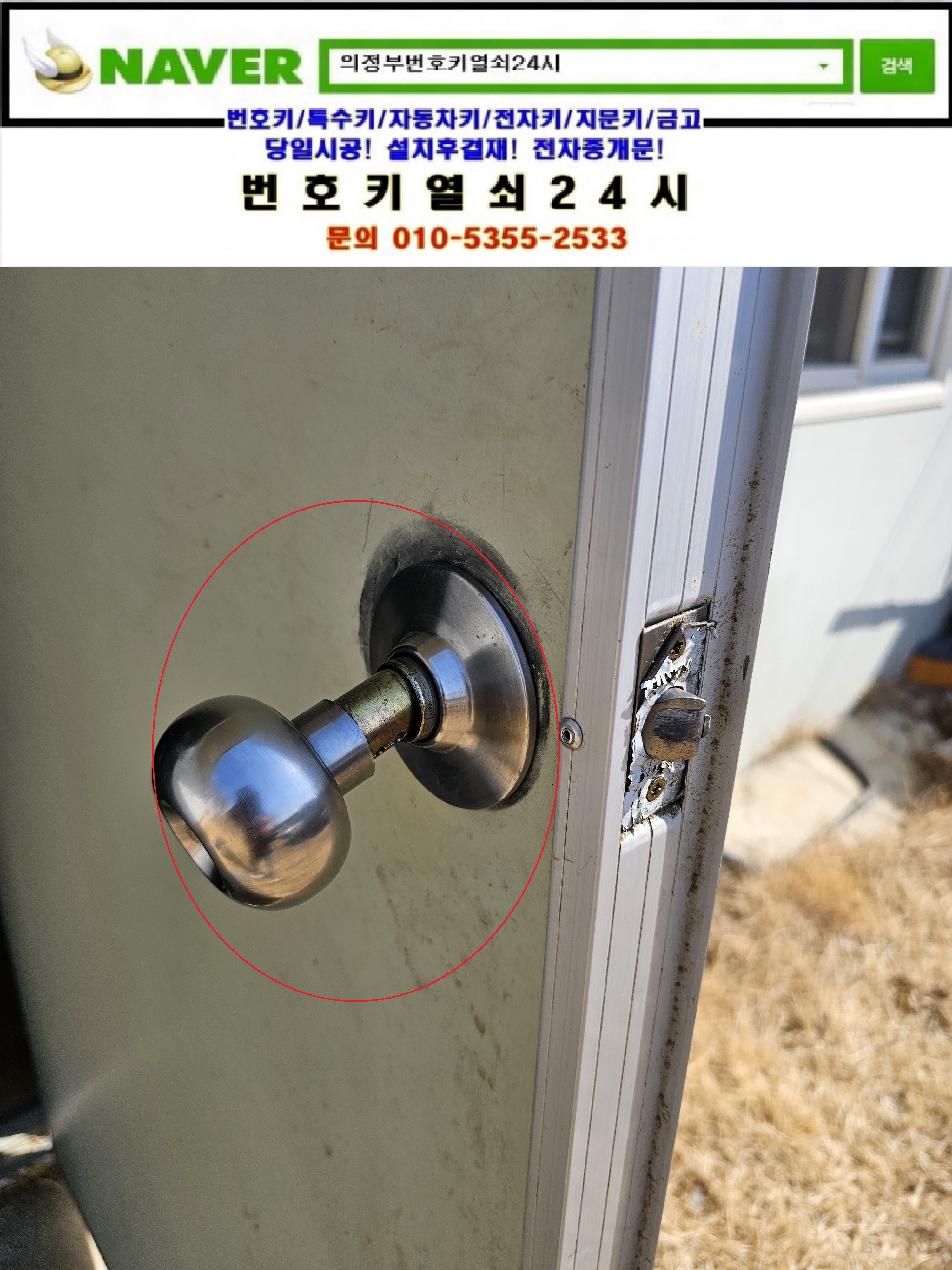 남양주시 별내동열쇠(순화궁로 646-2) **사무실 판넬문 창고사무실 문고리고장나 문고리교체설치출장은 번호키열쇠24시가(010 5355 2533) 설치합니다.