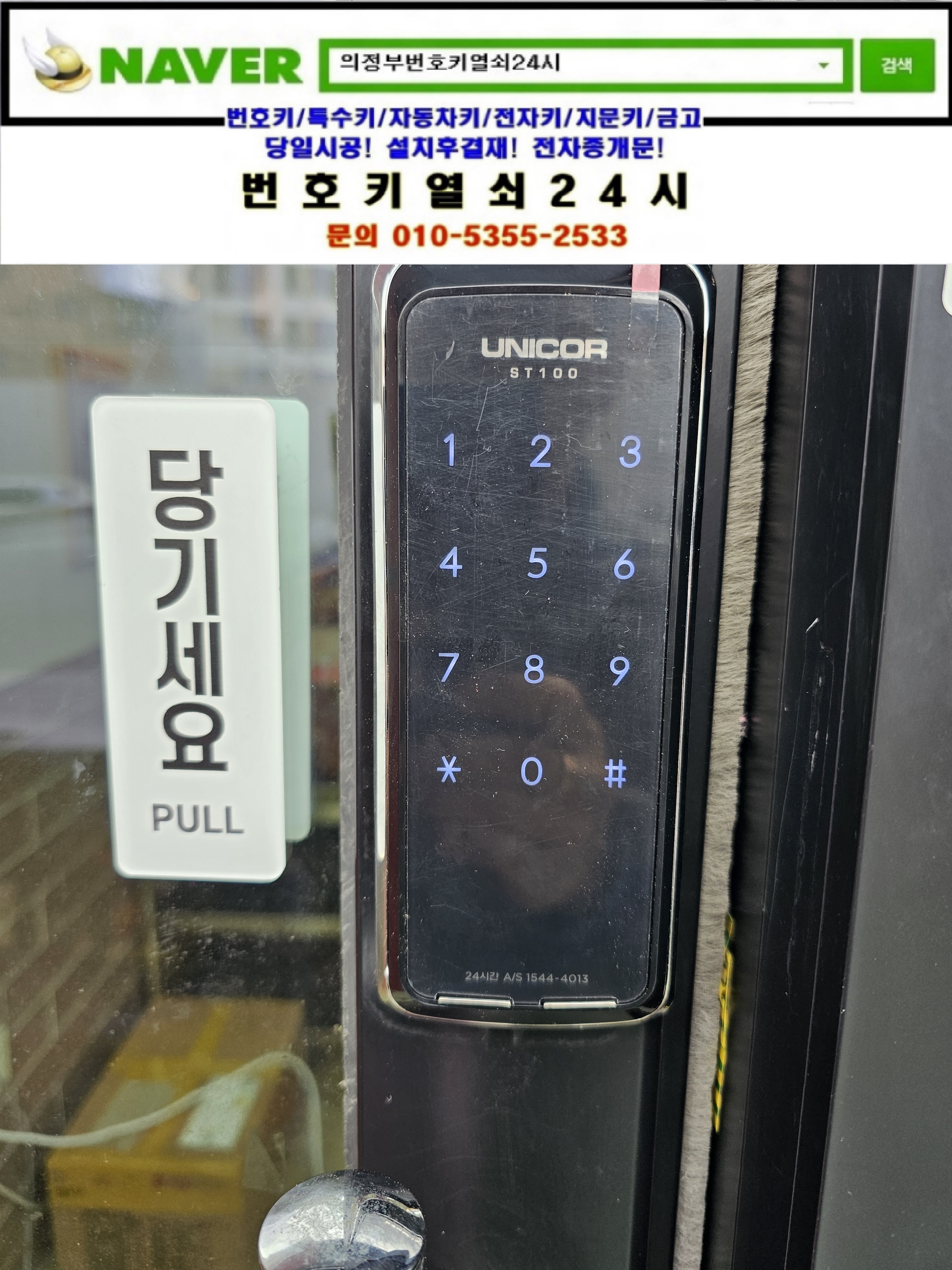 경기 남양주시 다산동열쇠(다산중앙로20번길10-39) **매장 디지털도어락고장나 스마트방식도어락 st100은 번호키열쇠24시가(010 5355 2533) 설치하고 왔습니다.