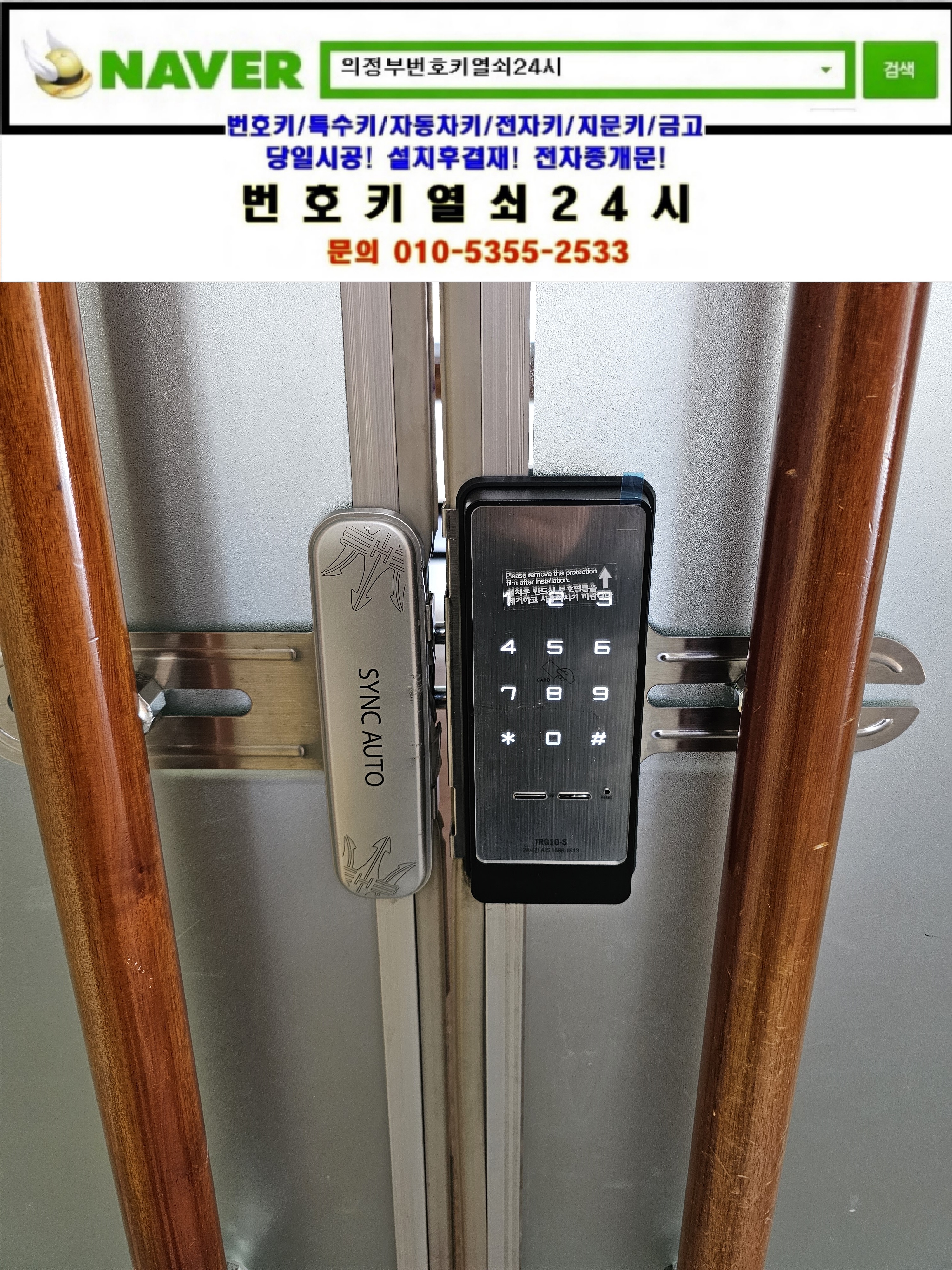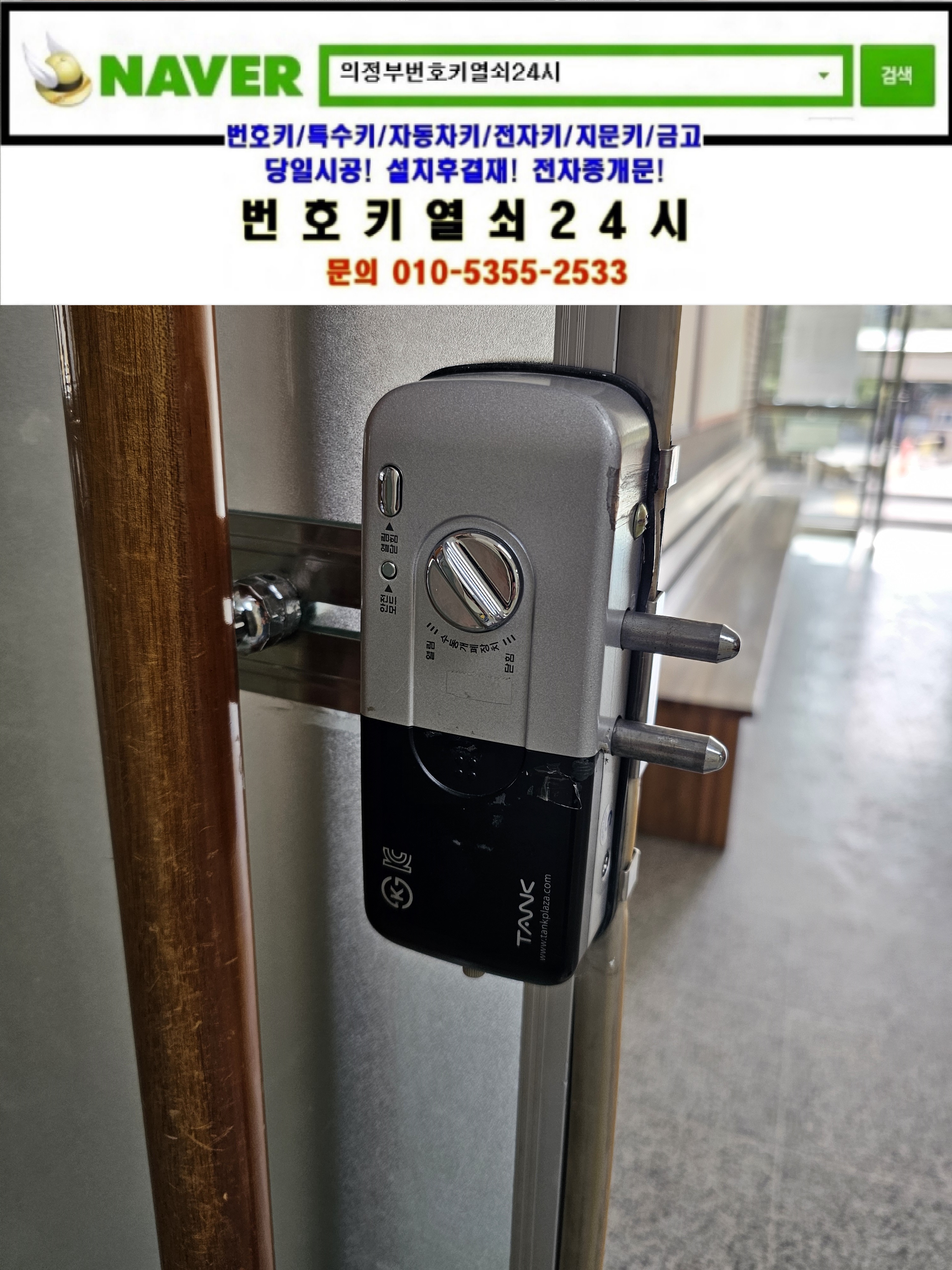 의정부시 민락동열쇠(용현로 125) **중학교 **실 유리문도어락 trg10은 번호키열쇠24시가(010 5355 2533) 설치하고 왔습니다.