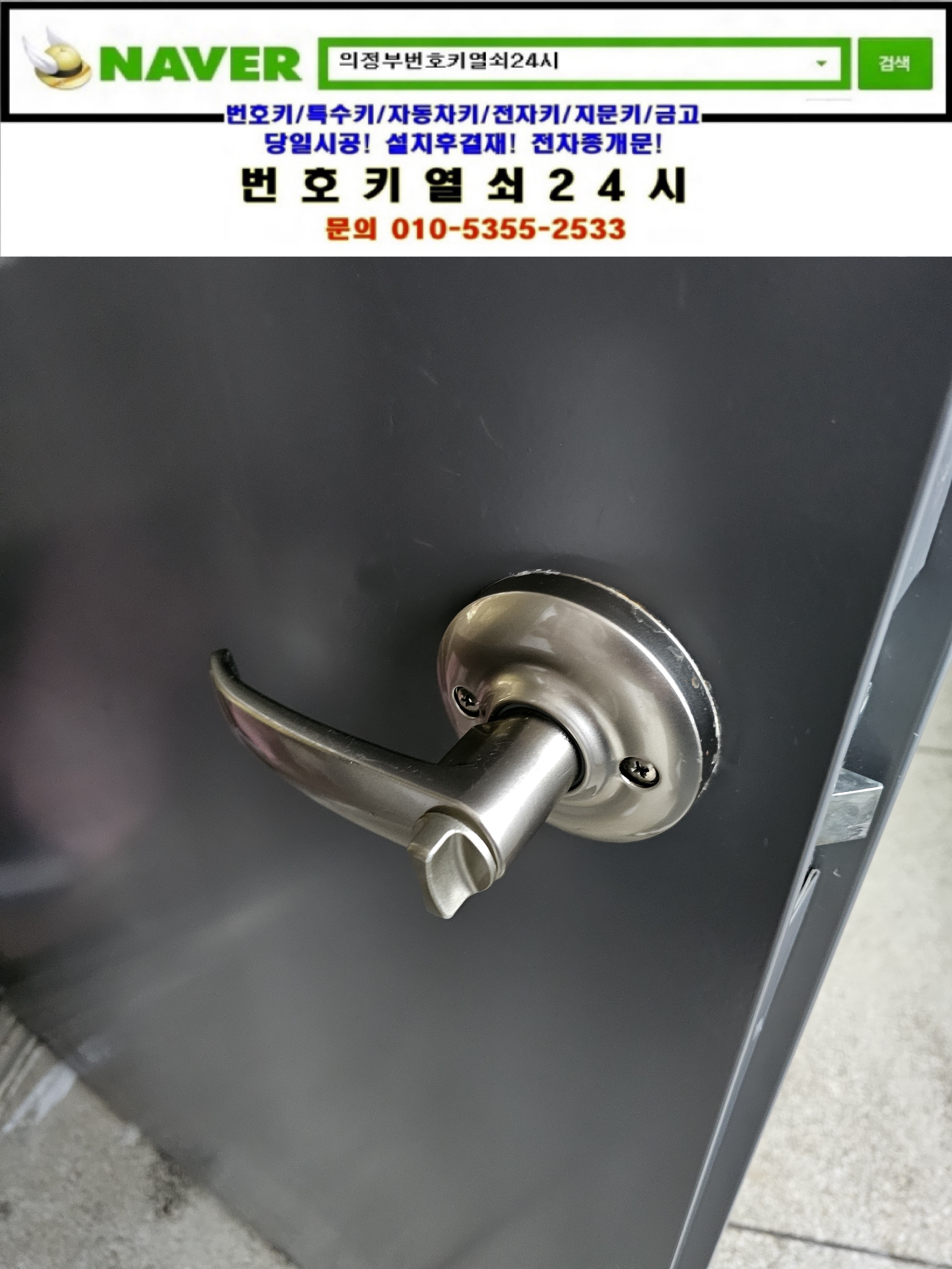 | [사무실보급형도어락설치/기본형번호키설치]죽엽산로 **회사 보급형도어락 sr05n은 번호키열쇠24시가 설치합니다. (0) | 2025.03.05 |