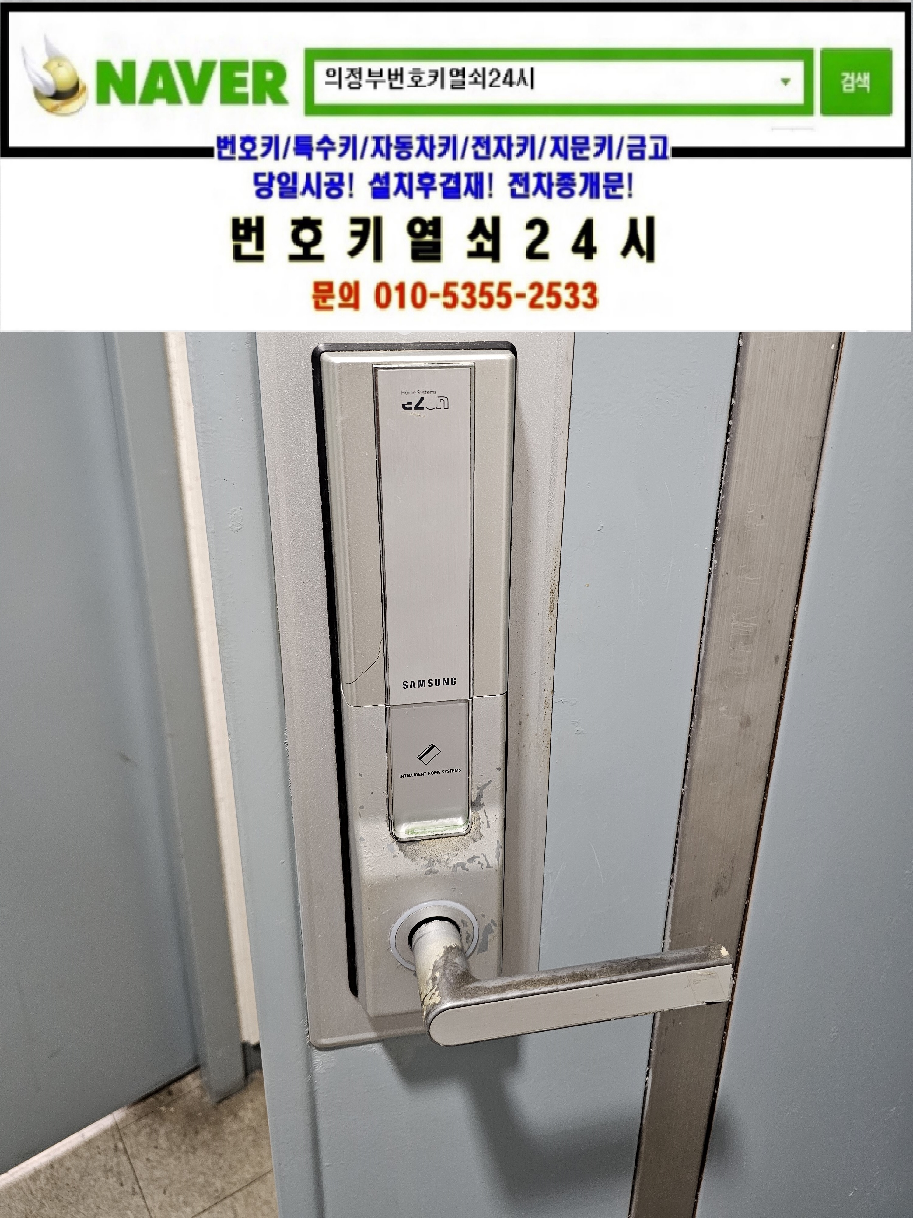 서울 도봉구 도봉동열쇠(마들로859-19) 도봉한신아파트 삼성이지온주키고장나 레바주키도어락 sm500은 번호키열쇠24시가(010 5355 2533) 설치하고 왔습니다.