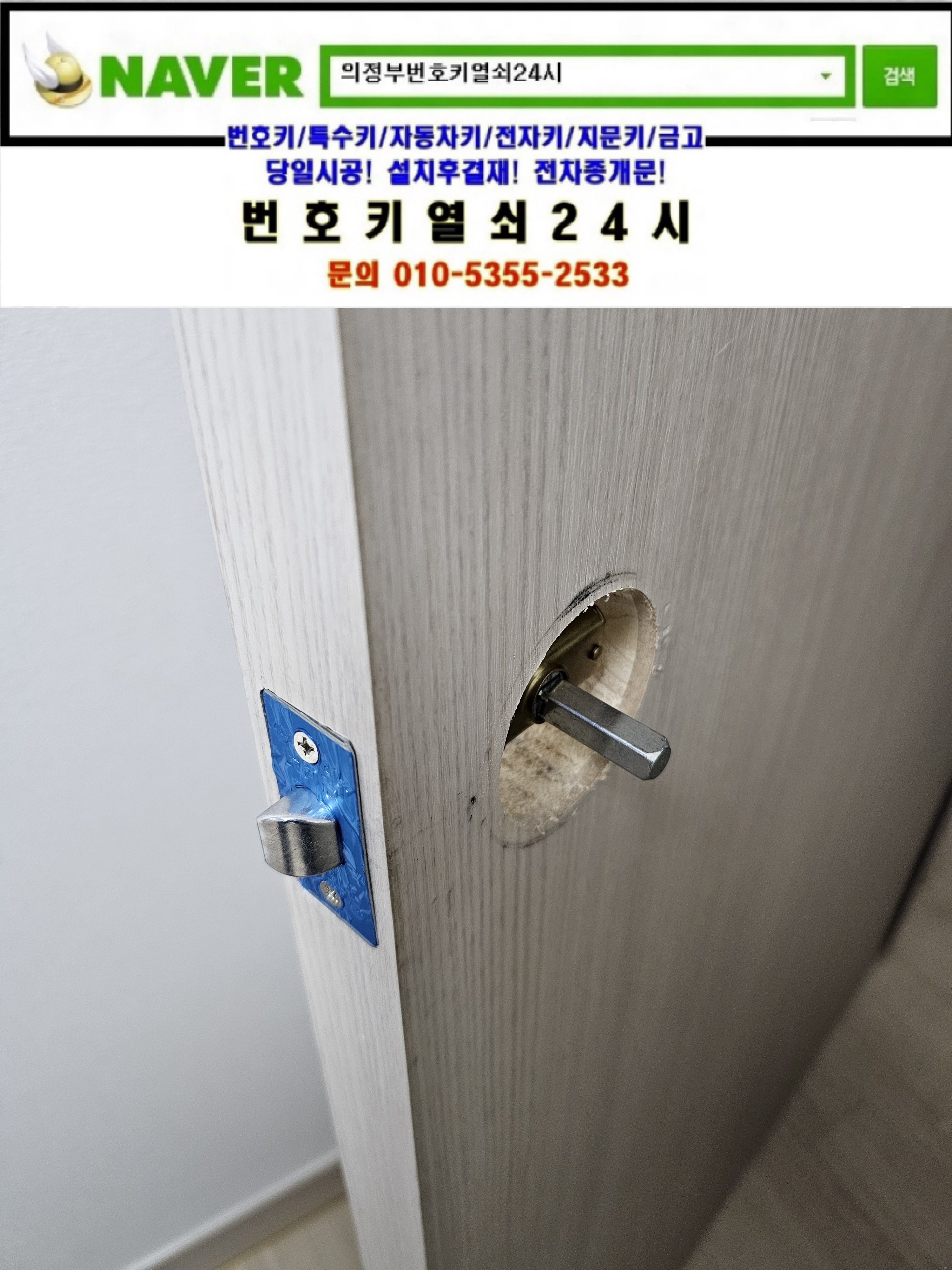 의정부시 고산동열쇠(훈민로13) 리슈빌포레아파트 방 레바문고리 고장나 레바문고리 교체설치출장은 번호키열쇠24시가(010 5355 2533) 설치합니다.