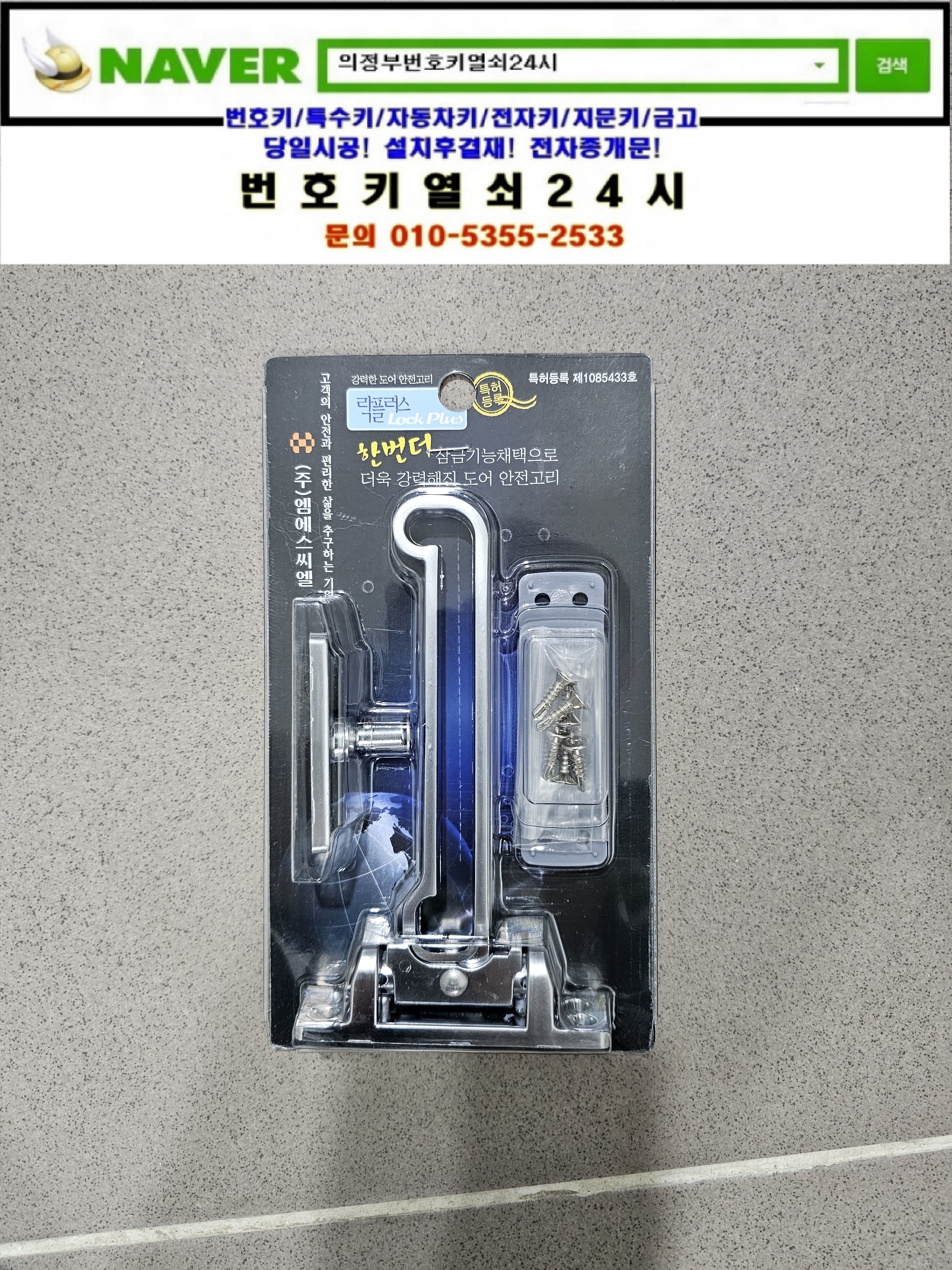 남양주시 금곡동열쇠(금곡로19번길 36) 금곡역한신더휴아파트 튼튼한 이중안전고리 락플러스는 번호키열쇠24시가(010 5355 2533) 설치하고 왔습니다.