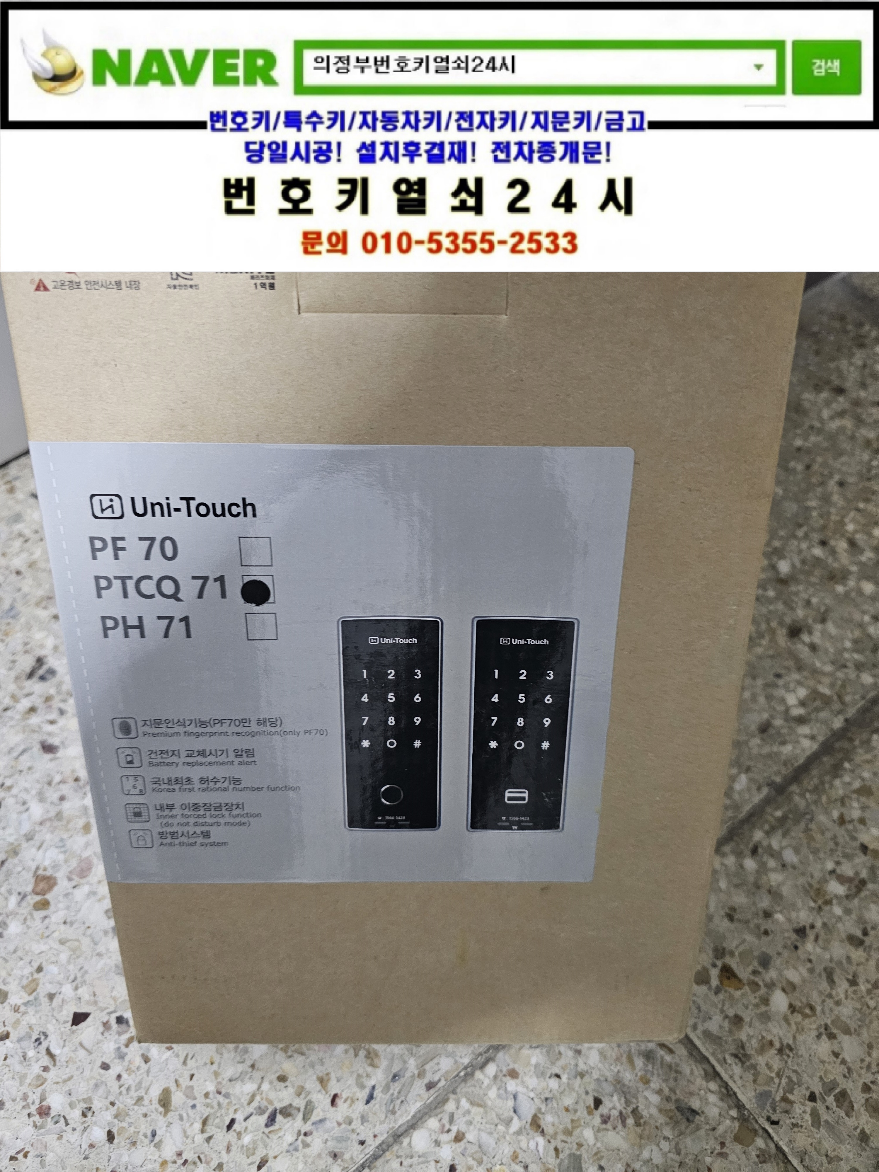 의정부시 금오동열쇠(부용로 137) 금오주공그린빌3단지아파트 치매환자용 특수디지털도어락 유니터치ptcq71은 번호키열쇠24시가(010 5355 2533) 설치합니다.