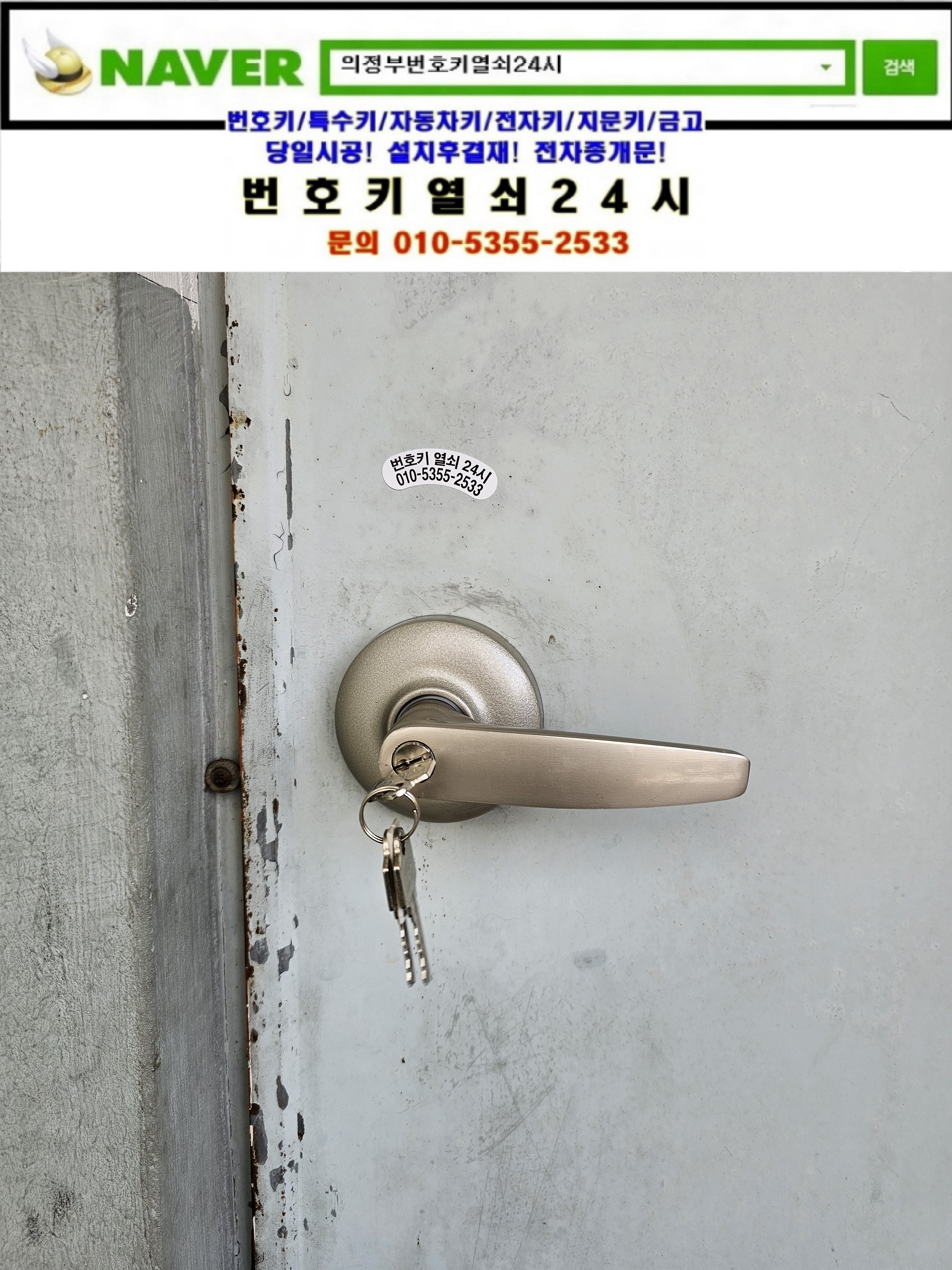 의정부 민락동열쇠(송산2동/오목로111) **빌딩 매장 원형손잡이 문고리고장나 레바문고리는 번호키열쇠24시가(010 5355 2533) 설치하고 왔습니다.