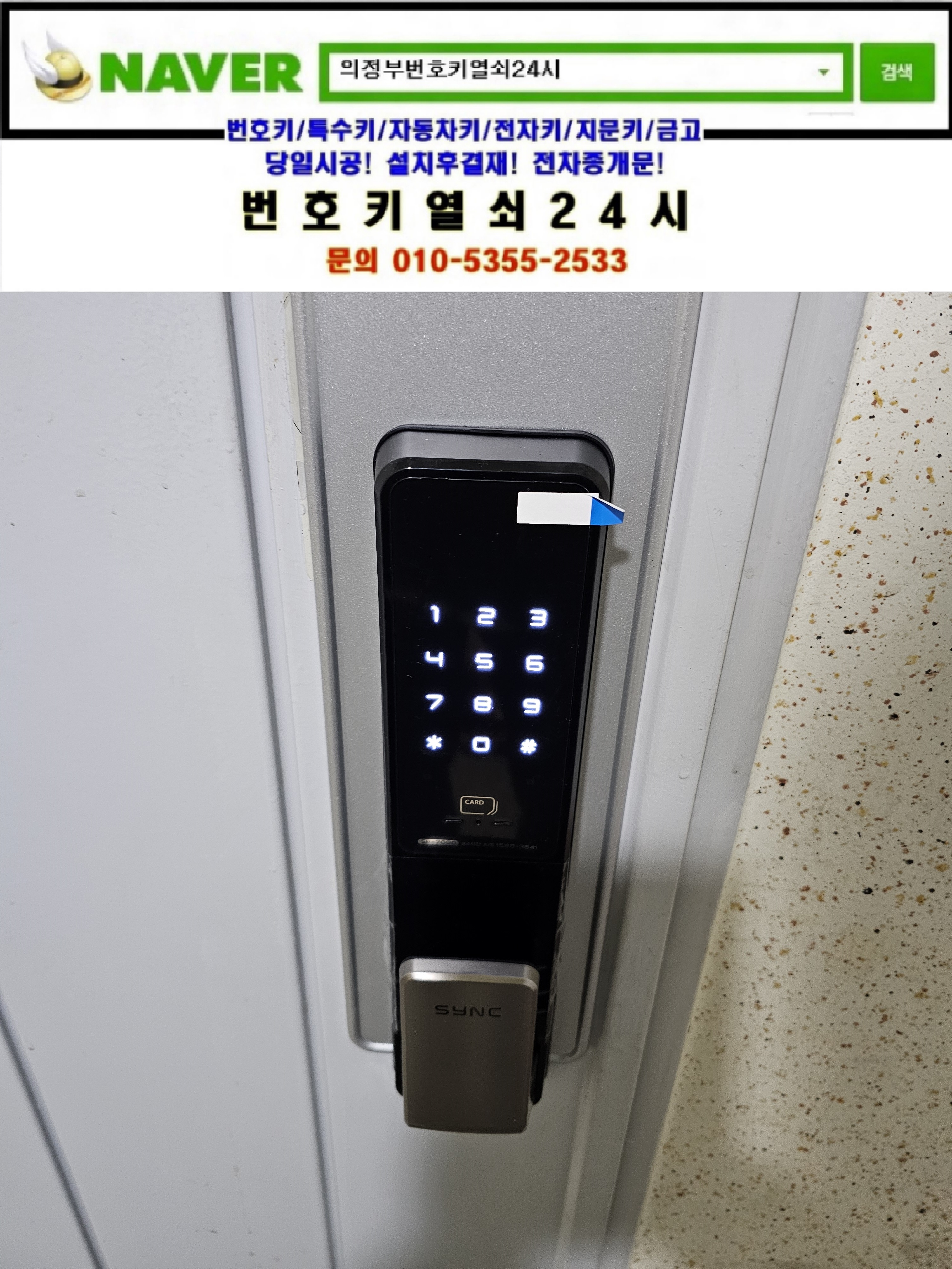 | [가납리스마트도어락설치/스마트카드키도어락설치]가납리 **회사 스마트도어락 sr10은 번호키열쇠24시가 설치합니다. (0) | 2025.03.27 |