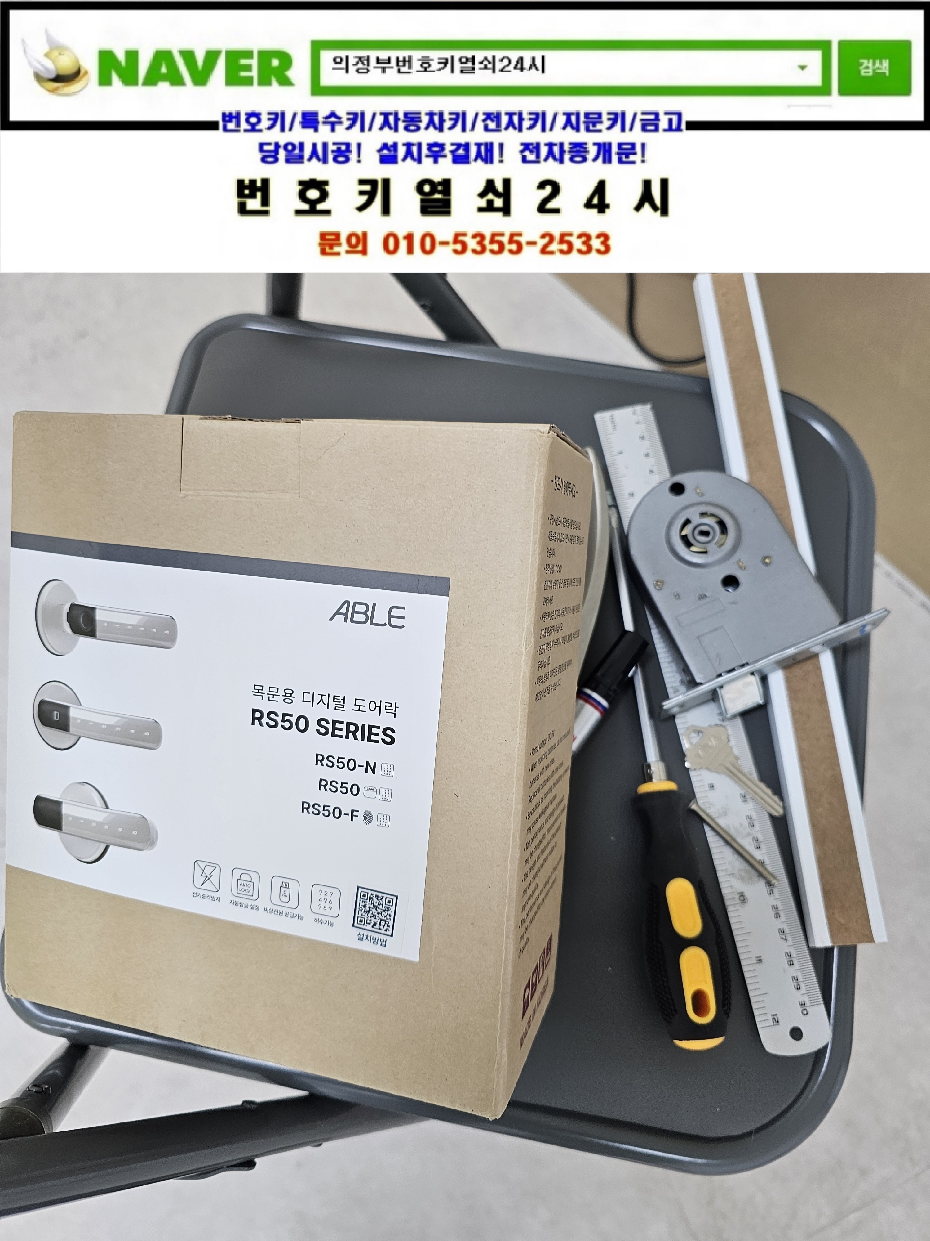 현장으로간곳은 의정부시 민락동열쇠(송산2동/오목로72/오목로72/송산주공4단지) 탑석드림캐슬아파트 상가동 **매장입니다. 강화유리문에 디지털도어락을 설치하신다고하셔서 보내드린제품중 보급형도어락 trg10-n모델을 설치해드리고 목문용 레바주키도어락을 가지고 있는데 방화문에 디지털도어락을 설치가되는지 물어보셔서 설치가 안되는이유등을 안내하니 따로 설치를 요청하셔서 m500n모델까지 설치해드리고 정상작동확인과 주의사항등을 설명드리고 철수합니다.tel:010-5355-2533