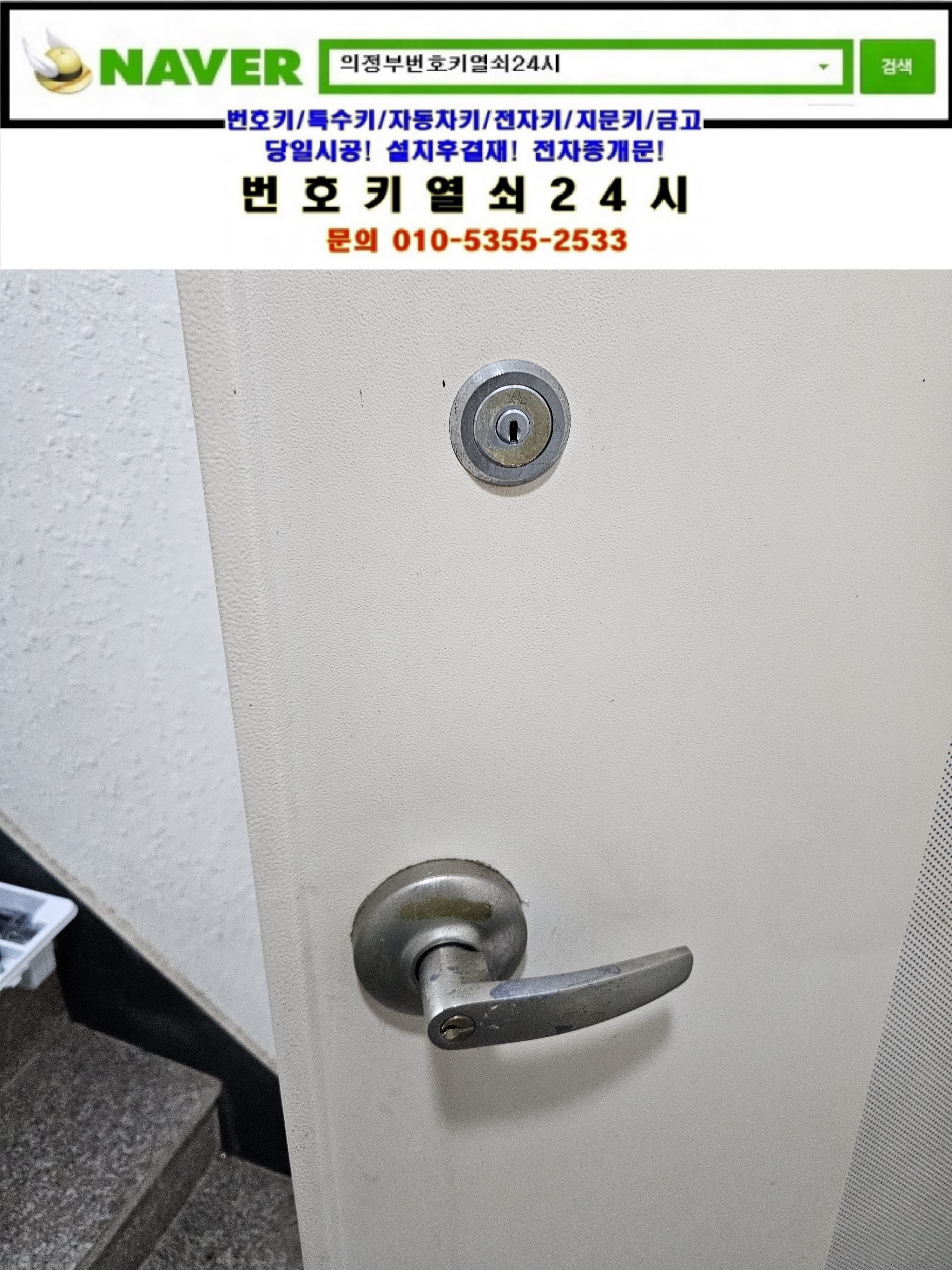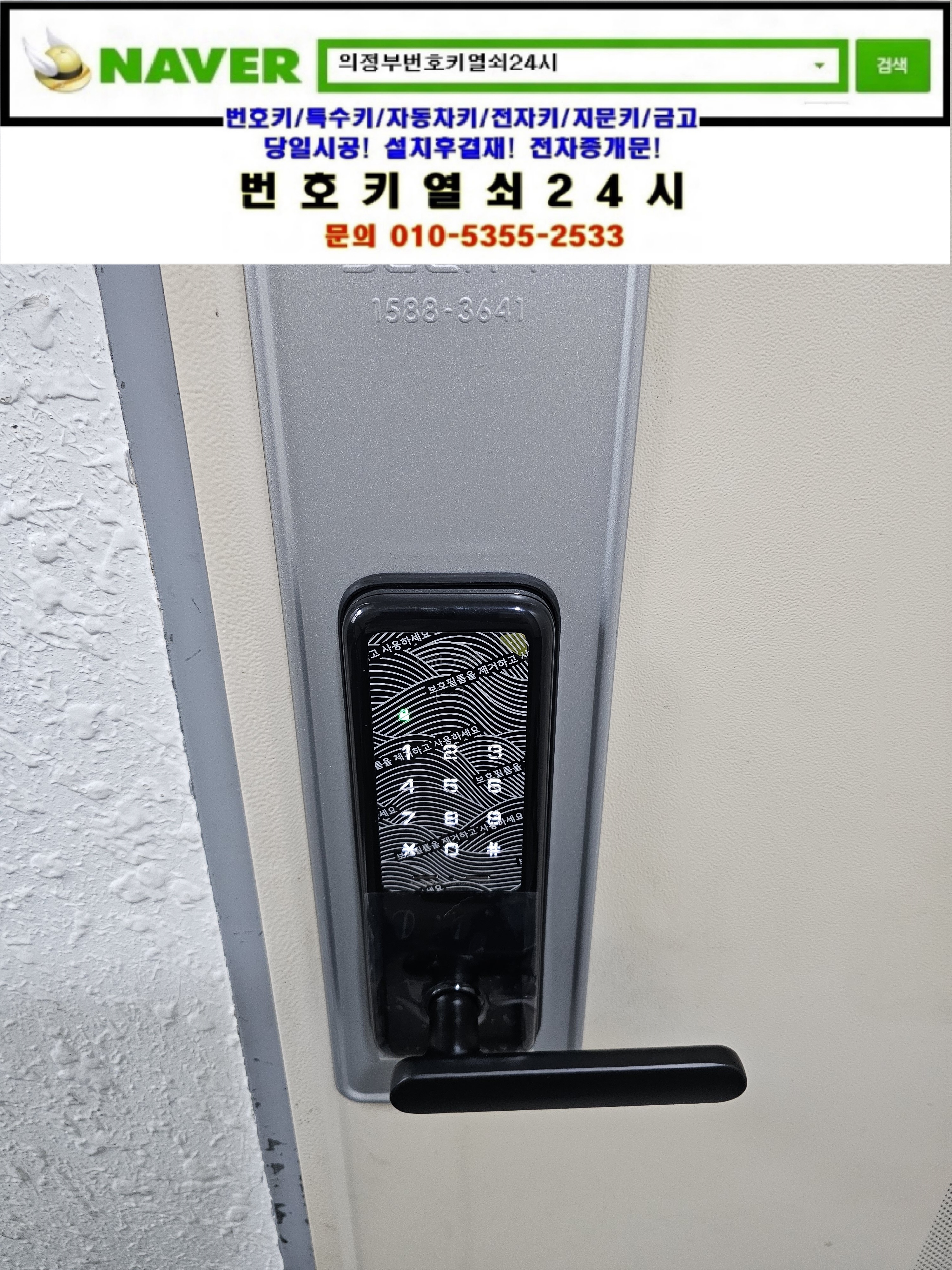 | [디지털도어락고장교체설치/스마트방식번호키설치]의정부동열쇠 **빌딩 사무실 스마트방식 sr10은 번호키열쇠24시가 설치합니다. (0) | 2025.04.16 |
