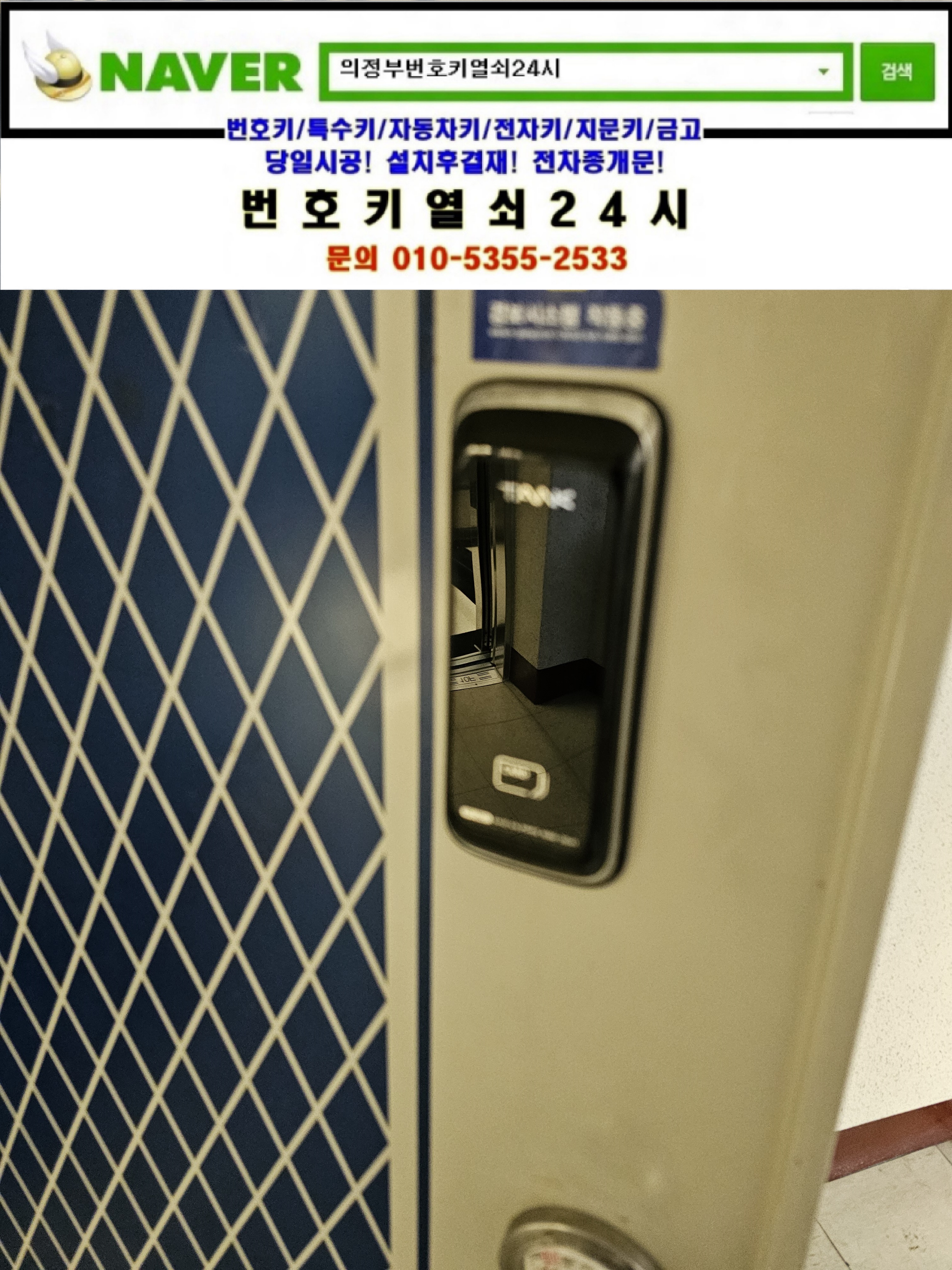 경기 남양주시 진접읍 내각리열쇠(내각1로99번길 34-1) 진접한신아파트 sm500 레바주키도어락은 번호키열쇠24시가(010 5355 2533) 설치합니다.tel:010-5355-2533