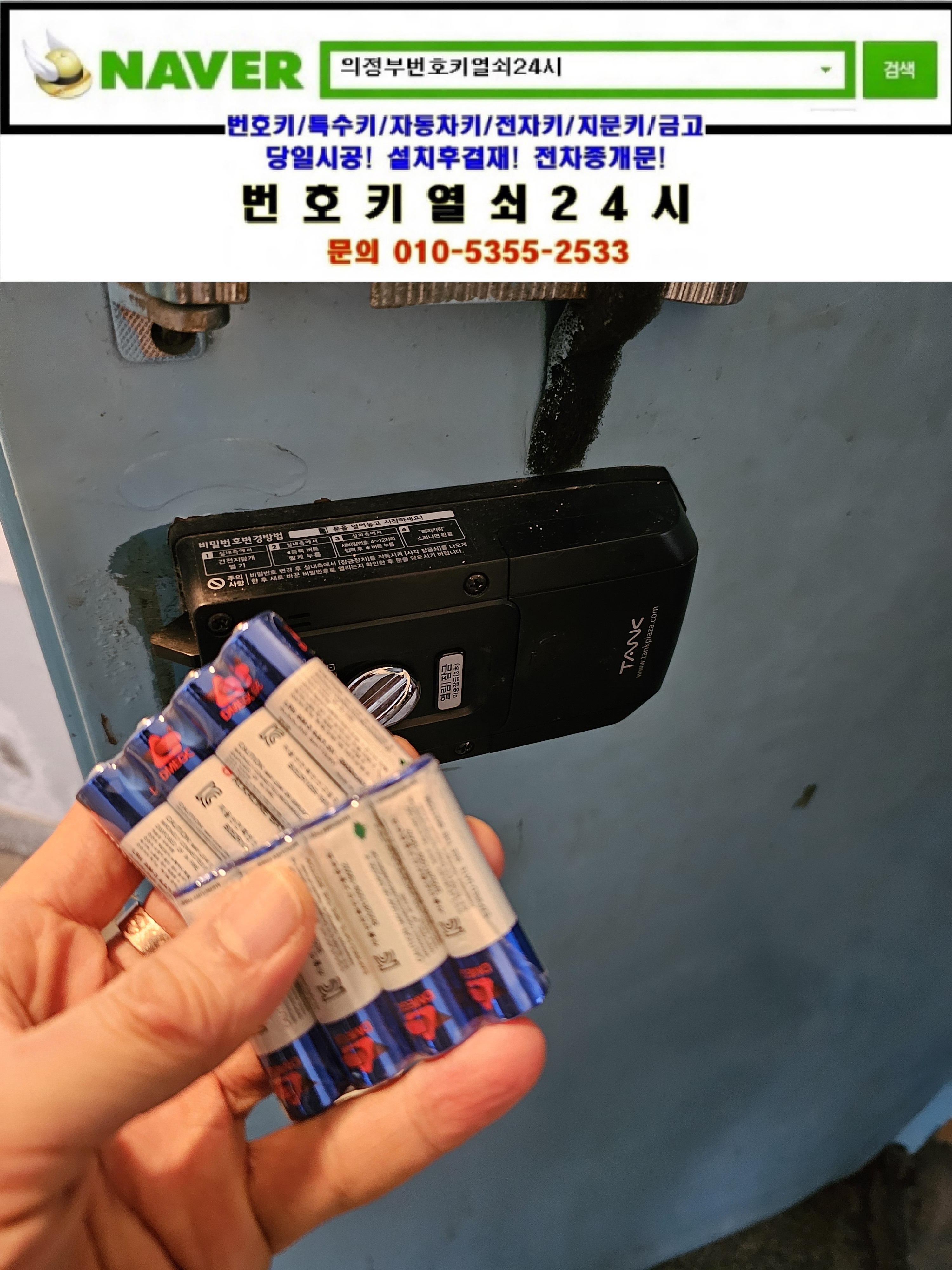 현장으로간곳은 서울시 강북구 수유동열쇠(삼각산로4길25) 다대주택빌라입니다. 고객님께서 어머니집에 건전지를 교체해야하는데 어르신께서 건전지 커버도 못여신다고 하셔서 현장에서 건전지커버 탈거방법과 건전지 교체방법 안내후 알칼라인 새건전지와 여분건전지까지 안내한뒤 디지털도어락사용시 주의사항까지 설명드리고 철수합니다.tel:010-5355-2533