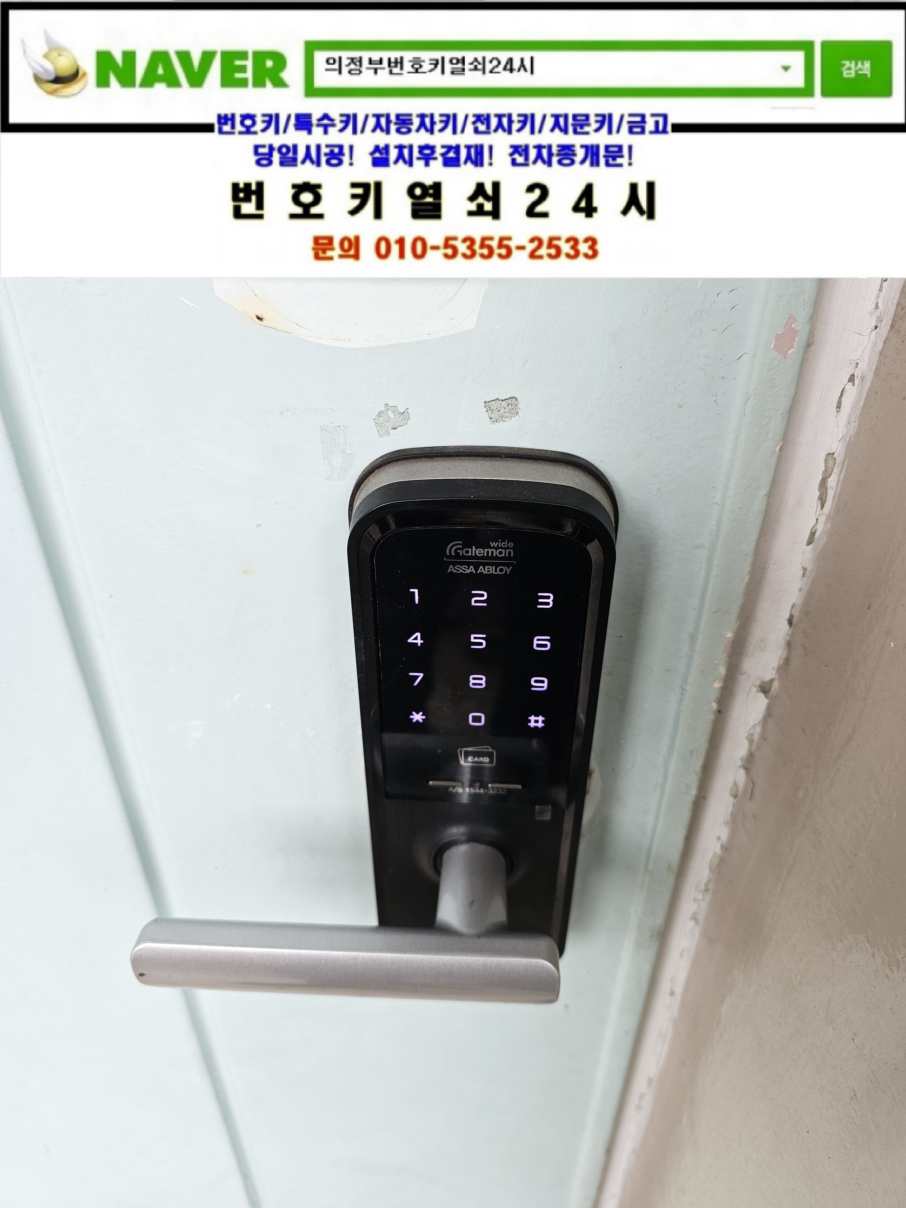 | [수유리디지털도어락건전지교체/출장건전지교체설치]수유동 일반주택 건전지 교체설치출장은 번호키열쇠24시가 설치합니다 (0) | 2025.04.20 |