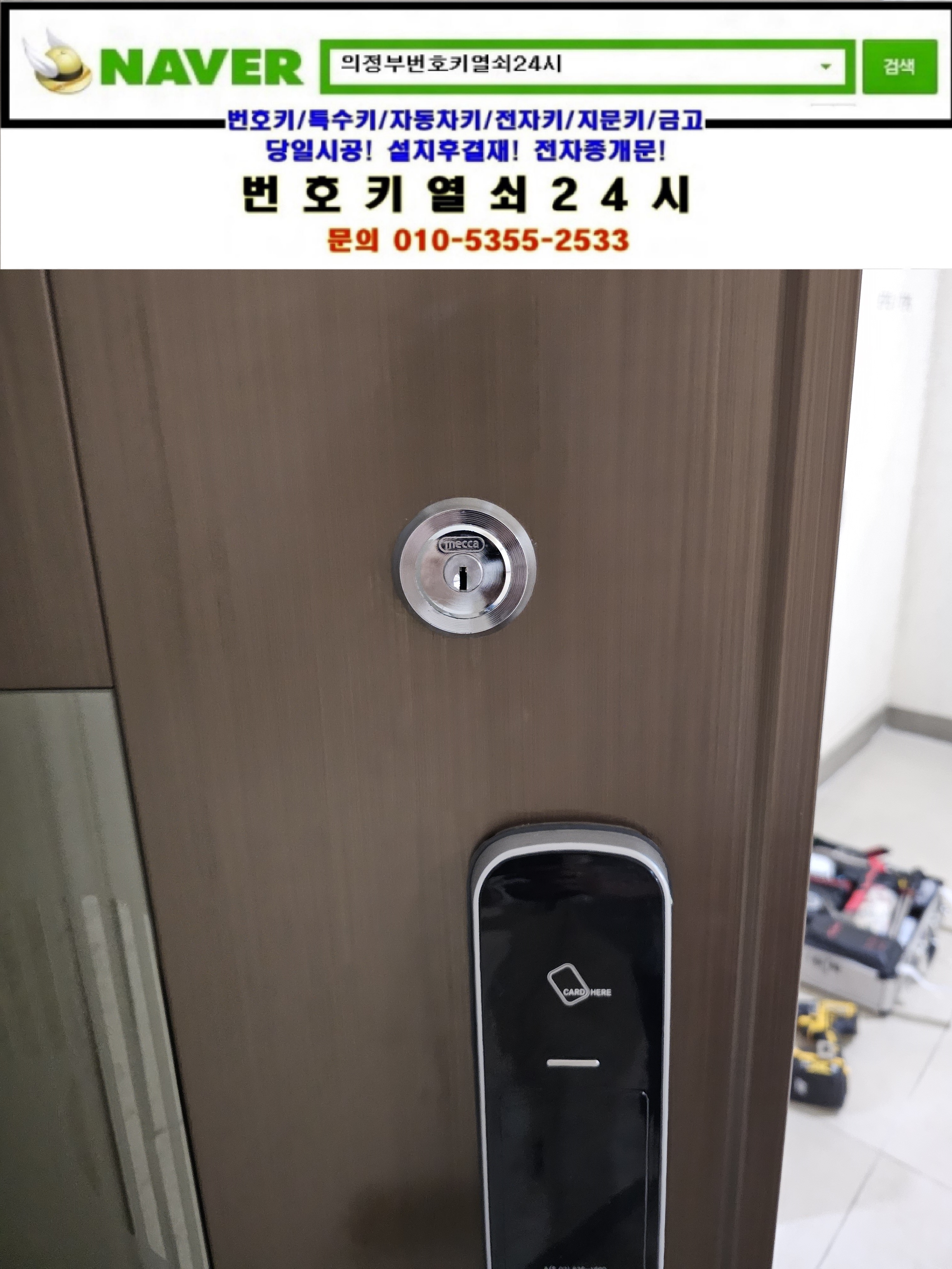 사장님 안녕하세요. 저희집 열쇠를 또 잃어버려서 설치해야하는데요. 하면서 번호키열쇠24시를 찾으셔서 방문안내후 현장으로가서 교체설치해드렸습니다.